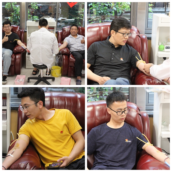 在采血現場,志愿者們認真填寫表格,有條不紊地排隊測量血壓、鑒定血型,最后挽起袖子,伸出胳膊,依次獻血。經過近三個小時的采血,累計獻血達6200毫升。這其中不僅有從生產基地趕過來的一線員工,也有不惑之年的老員工,更有剛剛進入公司的年輕同志。讓我們一起來感受下現場熱烈的氣氛。