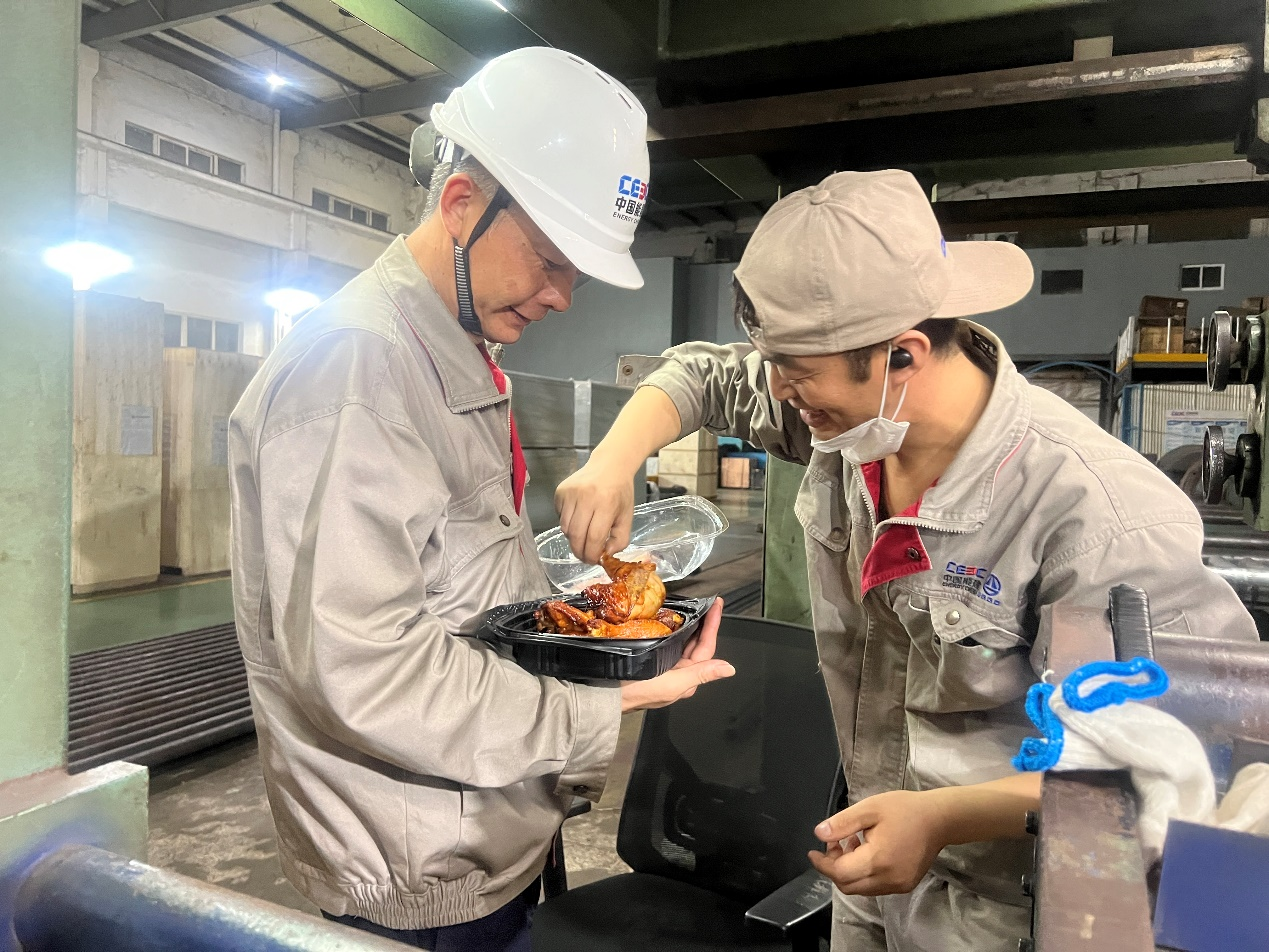 這時,“我”聞到了一股飯香,原來是領(lǐng)導(dǎo)帶著美食來看望“我”了,他親切的與工人師傅們交談,詢問生活與工作的情況,并對大家的辛勤付出表示感謝。